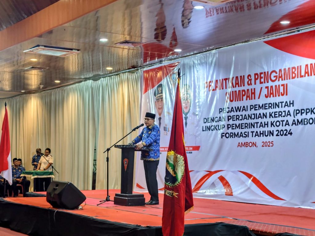 AMBON, PMN. COM : Setelah bertahun-tahun mengabdi tanpa kejelasan status, sebanyak 1.152 tenaga honorer di lingkungan Pemerintah Kota Ambon akhirnya resmi diangkat menjadi Pegawai Pemerintah dengan Perjanjian Kerja (PPPK) Formasi Tahun 2024 Tahap I. Pelantikan dan pengambilan sumpah/janji digelar di Ballroom Maluku City Mall (MCM) Ambon, Rabu (01/010/25) dipimpin langsung oleh Wali Kota Ambon, Bodewin Wattimena.