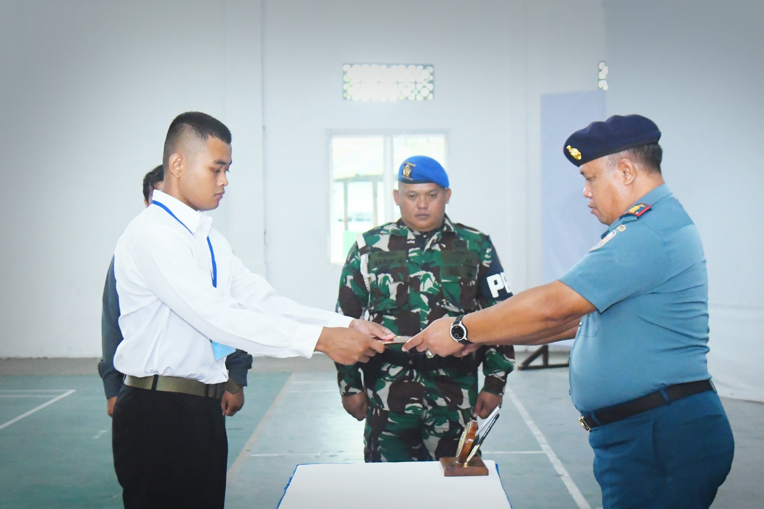 AMBON, PMN.COM : Pangkalan Utama TNI Angkatan Laut (Lantamal) IX Ambon. Brigjen TNI (Mar) Suwandi, S.A.P., M.M., diwakili Wakil Komandan Lantamal IX Kolonel Laut (P) Batos Leksono, CHRMP., selaku Wakil Ketua Panda laksanakan Upacara Penandatanganan Pakta Integritas Calon Bintara Pria/Wanita PK TNI AL dan Tamtama Pria PK TNI AL Gelombang II Tahun 2025 bertempat di Gedung J. Leimena Mako Lantamal IX. Rabu (06/08/2025)