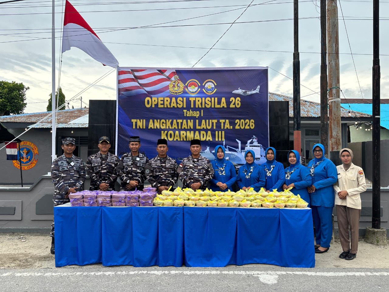 Senyum ramah juga terpancar dari Ketua Jalasenastri Cab-4 Korcab IX, Ny. Ema Sriadi, bersama para pengurus yang antusias menyapa warga.