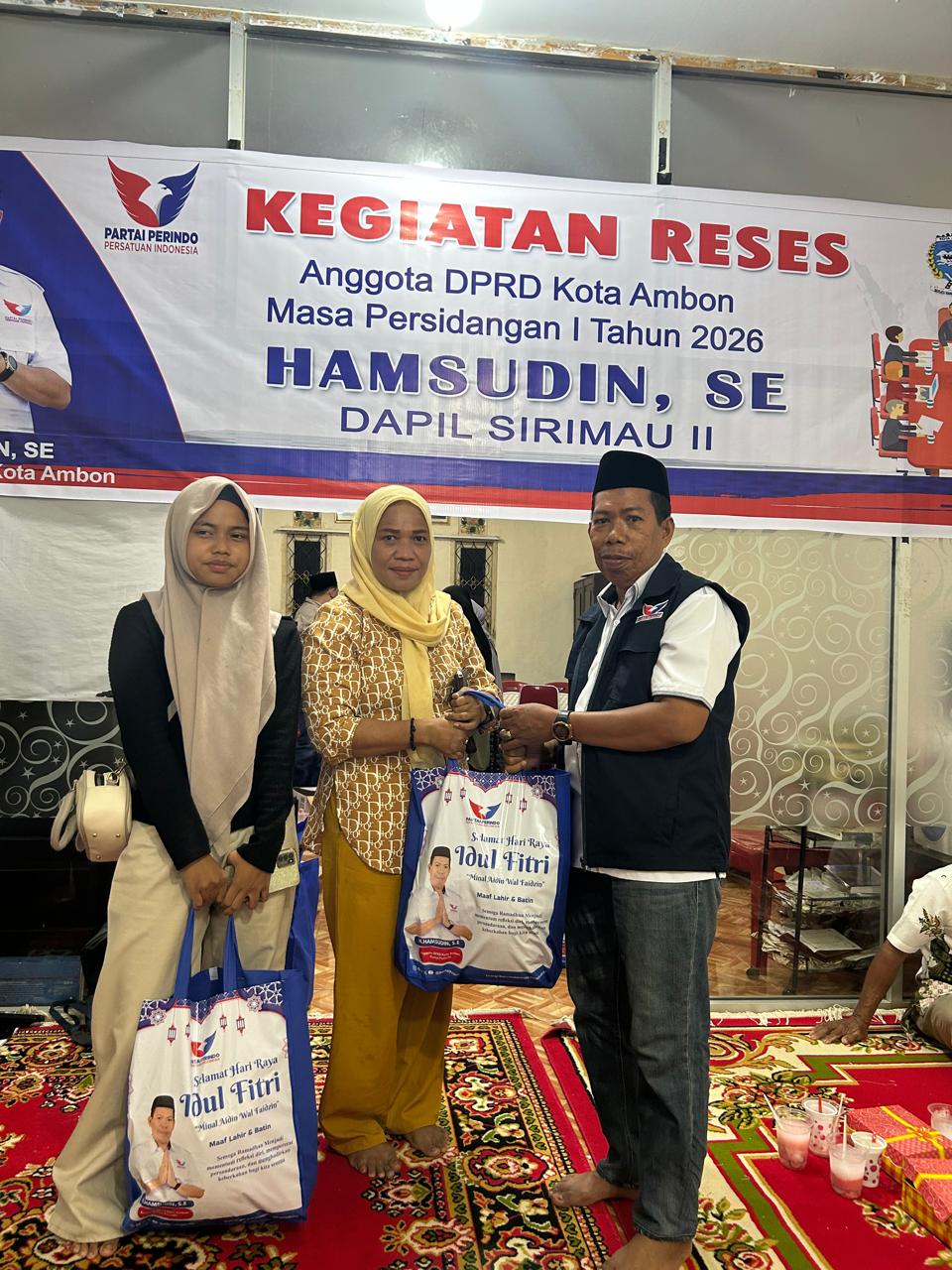 AMBON,PMN.COM : Anggota DPRD Kota Ambon dari Partai Persatuan Indonesia (Perindo), H. Hamsudin, S.E., memanfaatkan momentum bulan Ramadan untuk menggelar kegiatan reses sekaligus buka puasa bersama warga daerah pemilihan Sirimau II. Agenda tersebut berlangsung di Sekretariat Gedung KOPPAS Kota Ambon lantai dua, Ruko Batu Merah Blok B Nomor 55, pada Jumat (13/3/2026).