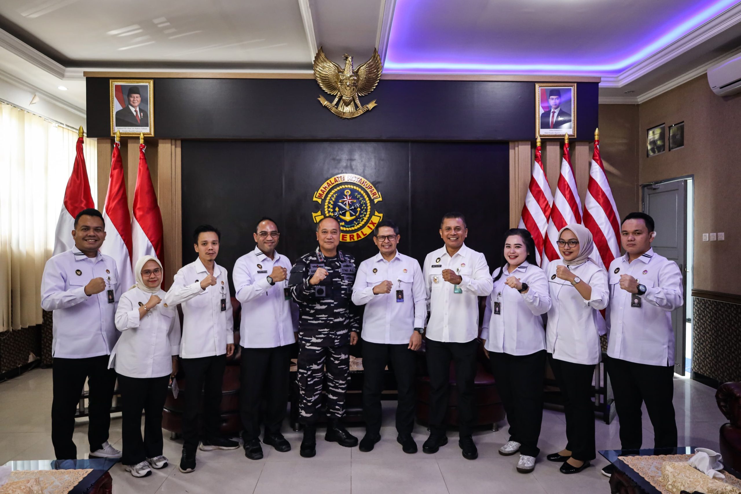 AMBON, PG. COM : Komando Daerah Angkatan Laut IX Ambon (Kodaeral IX Ambon). Komandan Komando Daerah Angkatan Laut (Dankodaeral) Laksamana Muda TNI Hanarko Djodi Pamungkas, S.H., menerima kunjungan kerja dari Tim Kementerian Koordinator Bidang Politik dan Keamanan (Kemenko Polkam) bertempat di Lobby Mako Kodaeral IX, Desa Halong, Kec. Baguala, Kota Ambon, Provinsi Maluku. Kamis (11/09/2025)