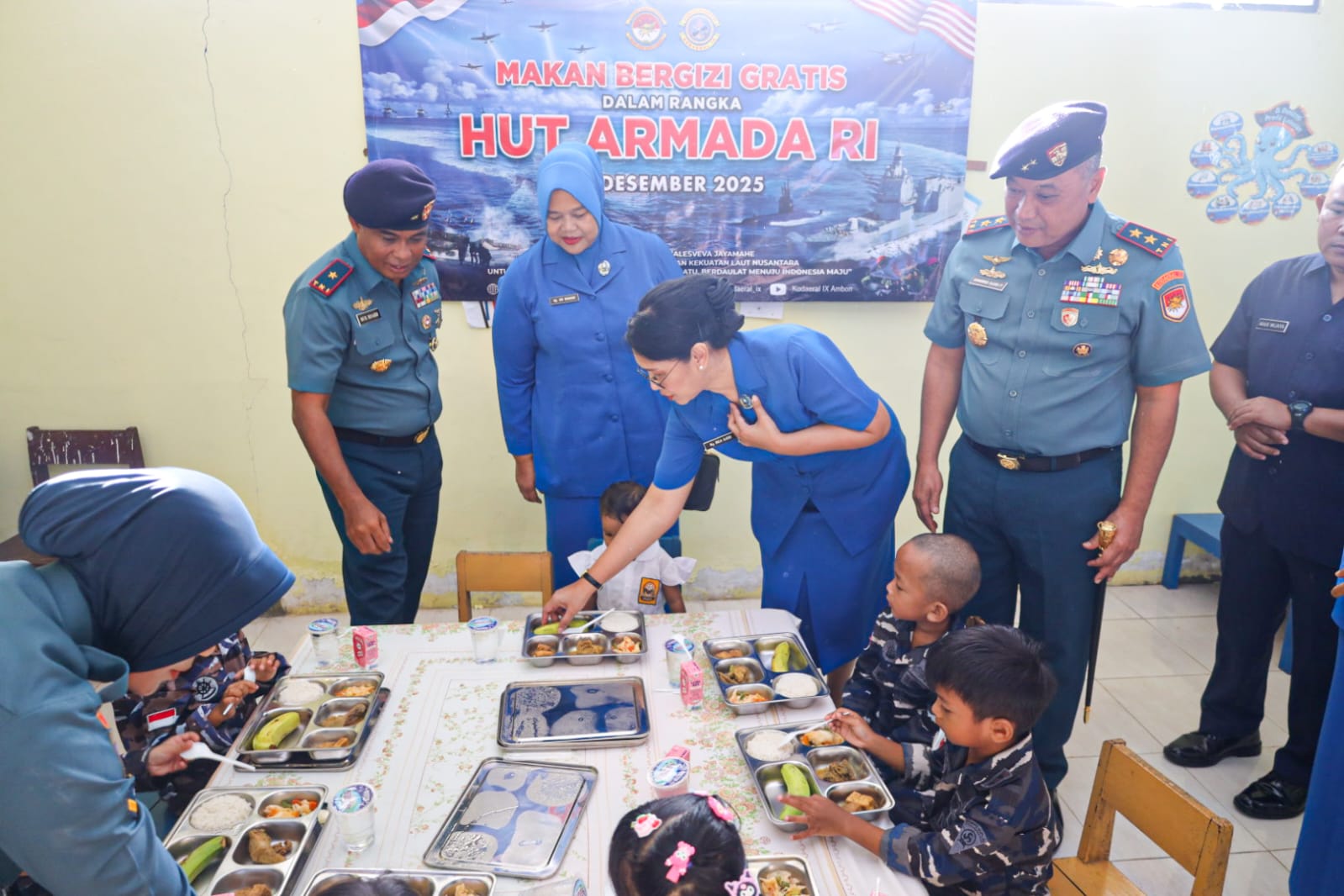 Dalam rangka menyongsong HUT Armada RI Tahun 2025, Dankodaeral IX didiampingi Ketua Daerah Kodaeral IX Gabungan Jalasenastri Koarmada RI melaksanakan pembagian Makan Bergizi Grartis (MBG) yang dilaksanakan di PAUD, TK, SD, dan SMP Yayasan Hang Tuah Cabang Ambon yang berada dibawah jajaran Kodaeral IX.