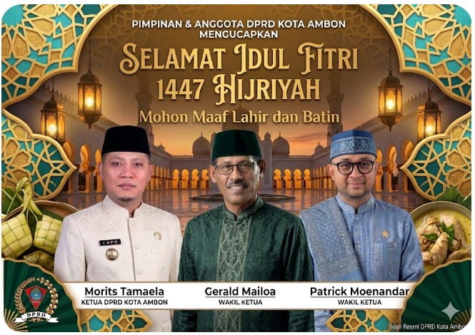 Iklan Idul Fitri Tahun 2026 AdrianusMaret 18, 2026Maret 30, 202616 Dilihat Post Views: 16 Pos terkaitWabub Bursel Dorong PLN Alihkan Jaringan Listrik Demi Stabilitas PasokanSapulette Daftar Calon Sekkot Ambon 14 April 2026Halal Bi Halal Nusamba Tegaskan Nusalaut–Ambalau sebagai Laboratorium Perdamaian Umat Beragama di MalukuSekjen NasDem Motivasi Kader di Ambon, Serahkan KTA dan Targetkan Juara di MalukuSambut HUT ke-80 TNI AU, Lanud Pattimura Gelar Karya Bakti di TMP Kapahaha AmbonKodaeral lX Gelar Rapat Staf dan Komando 2026