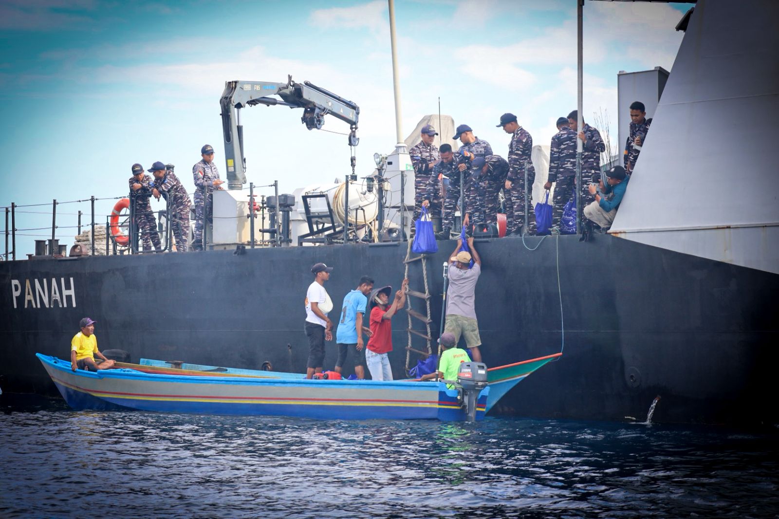 Kegiatan tersebut dilaksanakan di tengah laut dengan menggunakan KRI Panah-626, Kodaeral IX menyalurkan ratusan sembako bagi para nelayan Desa Tial, kegiatan tersebut merupakan salah satu rangkaian kegiatan dalam menyongsong HUT Armada RI Tahun 2025.