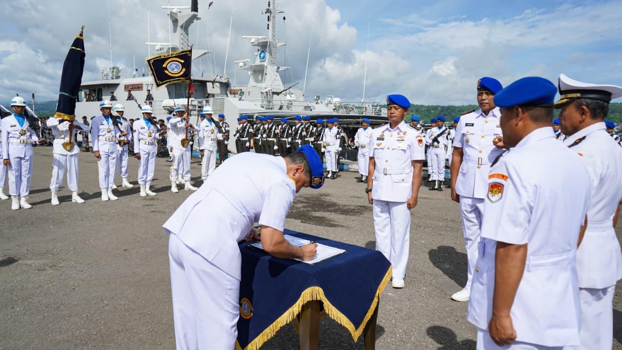 AMBON, PMN. COM : Komandan Komando Daerah Angkatan Laut (Dankodaeral IX), Laksamana Muda TNI Hanarko Djodi Pamungkas S.H. memimpin Upacara Serah Terima Jabatan Komandan Polisi Militer Kodaeral IX (Danpom Kodaeral IX) yang digelar di Dermaga Irian Mako Kodaeral IX, Kota Ambon, Maluku pada Jumat (9/1/2026).