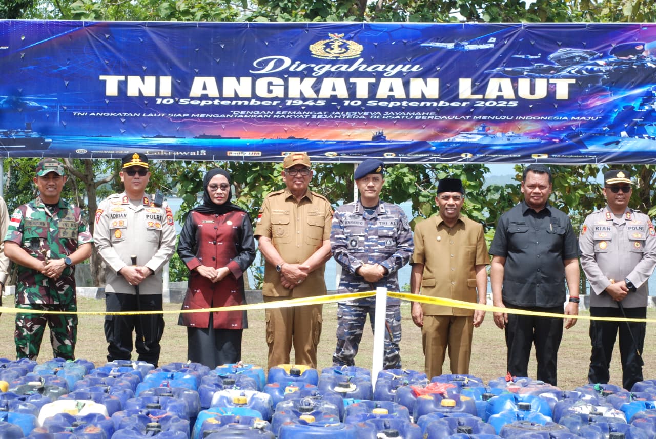 TUAL,PMN.COM : Pangkalan TNI Angkatan Laut (Lanal Tual) memusnahkan minuman keras ilegal jenis sopi sebanyak 13.810 liter yang dihadiri oleh Komandan lanal Tual, Kolonel Laut (P) Hananto Dwi P., S.T., M.Tr.Hanla., M,M, Bupati Maluku Tenggara, Wakil Walikota Tual, Ketua DRPD Kota Tual, Dandim 1503/Tual, Danyon 735 NWS, Kapolres Tual, Kapolres Maluku Tenggara, Dansat Brimob (Selasa/09/25).