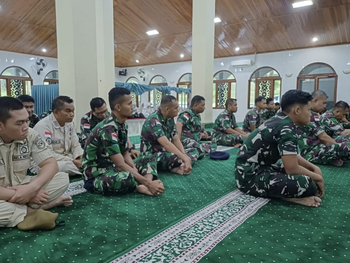 AMBON, PG. COM : Guna membina mental prajurit untuk meningkatkan iman dan takwa kepada Tuhan Yang Maha Esa, personel Komando Daerah TNI Angkatan Laut lX (Kodaeral lX) mengikuti Kuliah Agama Untuk Siraman Rohani Islam (Kausri) bertajuk Manfaat Disiplin dalam Islam di Mesjid Nurul Iman Mako Kodaeral lX, Halong, Kota Ambon, Maluku, Kamis (22/1/2026).