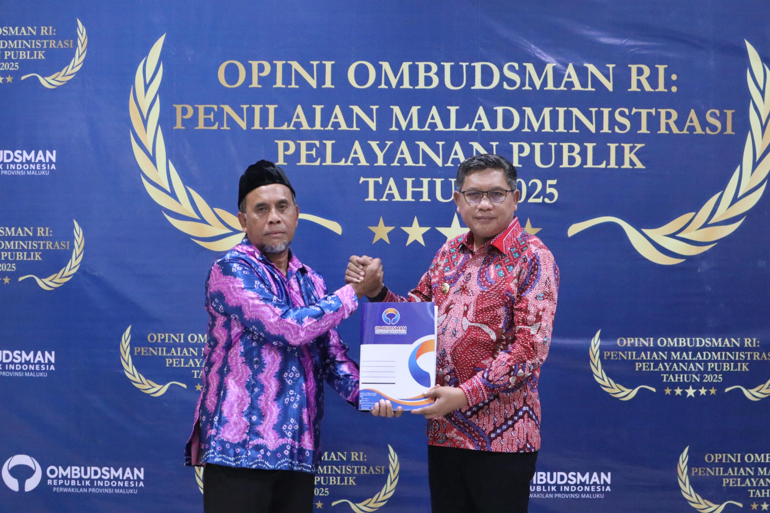 AMBON, PG.COM : Ombudsman RI Perwakilan Provinsi Maluku menyerahkan hasil Penilaian Opini Kepatuhan Penyelenggaraan Pelayanan Publik tahun 2025 kepada Pemerintah Kota Ambon pada Kamis (12/02) di Kantor Perwakilan Ombudsman RI Provinsi Maluku. Hasil penilaian tersebut diterima langsung oleh Walikota Ambon, Bodewin M. Wattimena.