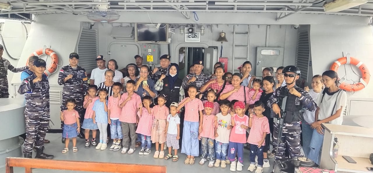 Kunjungan edukasi siswa Yayasan Heka Leka yang terdiri dari 15 siswa, tiga guru pendamping dan 22 orang tua murid tersebut, bertujuan untuk pengenalan tentang TNI AL dan Kapal Perang.